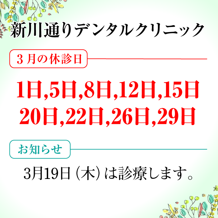3月休診日情報